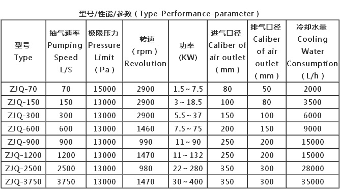 概述 ZJQ系列氣冷式羅茨真空泵,是在ZJ系列羅茨真空泵的基礎上增加了旁路氣體冷卻系統(tǒng)而衍生出來的新產(chǎn)品。由于其特殊的結(jié)構(gòu)設計,使其可在高壓差和高壓縮比下長期可靠的運行。冷卻氣體從泵的兩側(cè)進入泵內(nèi)吸氣腔,使泵不會因氣體的壓縮而出現(xiàn)過熱,但對泵的抽氣性能沒有任何影響。 冷卻器和電機是每臺泵必備的附件,冷卻器和電機的規(guī)格是根據(jù)不同的工況而定。泵可以單獨使用,或與液環(huán)真空泵和普通羅茨真空泵串聯(lián)成機組,達到更高真空度來滿足各類工藝要求。