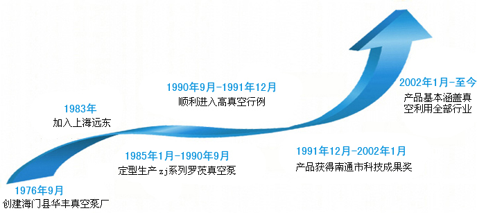 1988年公司參照國外經驗成功研制羅茨真空泵,命名為:ZJ系列羅茨真空泵。并且定型生產:ZJ-150,ZJ-300兩種型號